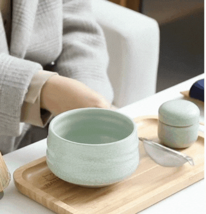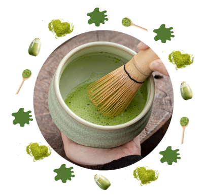 Making matcha with your whisk set is quick and easy. All you need to do is add a small amount of matcha powder into a bowl, pour in some hot (but not boiling) water, and whisk it using the bamboo whisk in quick zigzag motions until it becomes smooth and frothy
