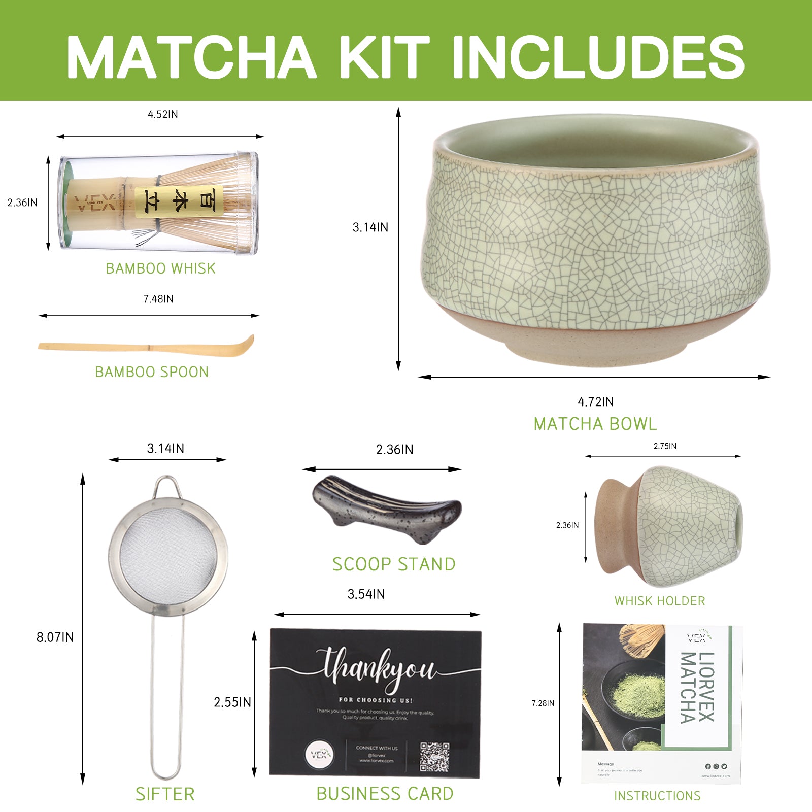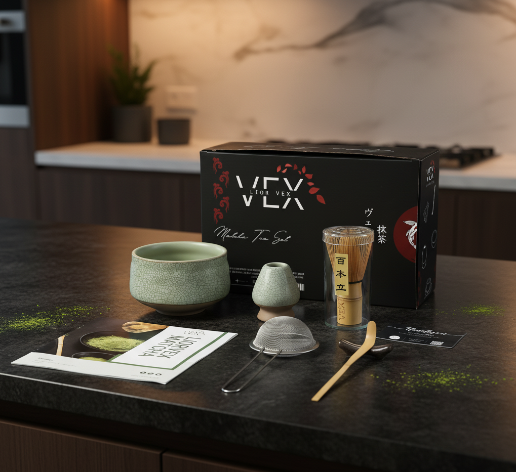 This complete matcha whisk set includes everything you need from the bamboo whisk to the scoop making it effortless to prepare smooth, frothy, and authentic matcha right at home.